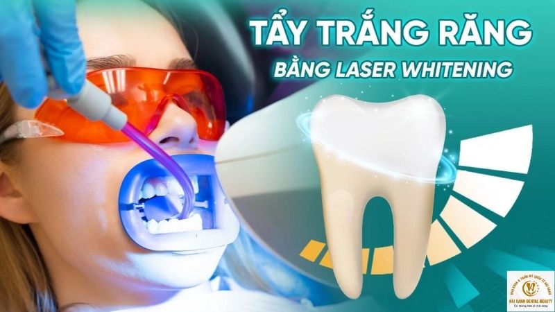 Tẩy trắng răng là phương pháp dùng hợp chất oxy hóa và năng lượng từ ánh sáng laser tạo ra phản ứng trên bề mặt răng để làm đứt chuỗi phân tử màu ngà, giúp cho răng trắng và sáng hơn.