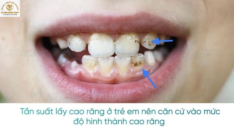 Không có một tần suất cố định áp dụng cho mọi trẻ vì mức độ hình thành cao răng phụ thuộc vào nhiều yếu tố như thói quen vệ sinh, chế độ ăn uống, tình trạng răng miệng và yếu tố di truyền. Tuy nhiên, khuyến cáo chung là nên kiểm tra và lấy cao răng (nếu cần) định kỳ mỗi 6 tháng/lần tại nha khoa uy tín.
