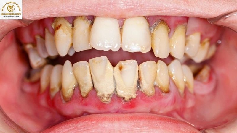 • Viêm nha chu và áp xe nướu: Cao răng độ 3 là nguyên nhân hàng đầu dẫn tới viêm nha chu – bệnh lý nguy hiểm có thể phá hủy xương ổ răng. Áp xe nướu hình thành khi vi khuẩn gây nhiễm trùng tạo mủ, khiến vùng nướu sưng to và đau nhức.