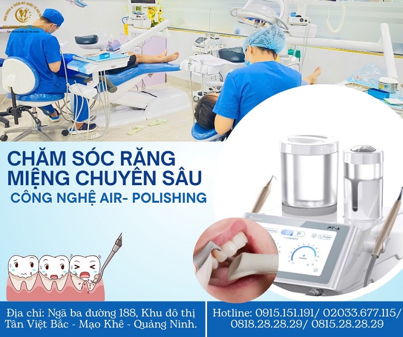 • Công nghệ hiện đại: Chúng tôi sử dụng máy cạo vôi răng bằng sóng siêu âm và máy thổi cát Air Polishing tiên tiến. Công nghệ này giúp loại bỏ mảng bám và cao răng một cách nhẹ nhàng, không gây tổn thương men răng hay ê buốt.