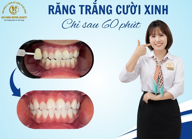 Tẩy trắng răng tại Nha Khoa Hải Oanh là sự lựa chọn của rất nhiều khách hàng. Đến với Nha Khoa Thẩm Mỹ Quốc Tế Hải Oanh, bạn sẽ sớm sở hữu hàm răng trắng sáng, đẹp rạng rỡ nhờ công nghệ tẩy trắng răng Laser Whitening mới, hiện đại.