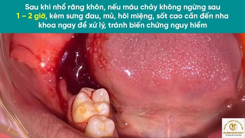 - Chảy máu không cầm được: Chảy máu nhẹ trong 24 giờ đầu là bình thường, nhưng nếu máu tiếp tục rỉ ra không ngừng dù đã cắn gạc liên tục, hoặc bạn thấy máu tươi ồ ạt, hãy đến ngay cơ sở nha khoa. Đây có thể là dấu hiệu cho thấy cục máu đông chưa hình thành hoặc đã bị tan, cần được xử lý y tế.