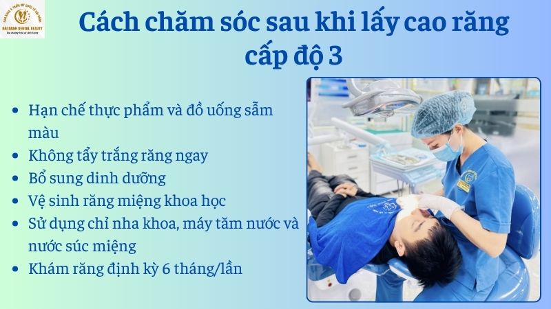 Sau khi lấy cao răng cấp độ 3, răng và nướu sẽ sạch nhưng nhạy cảm hơn do lớp cao răng đã được loại bỏ, bề mặt răng vừa được làm sạch và vùng nướu cần thời gian hồi phục. Do đó, chăm sóc đúng cách là yếu tố cần thiết để duy trì kết quả và bảo vệ sức khỏe răng miệng lâu dài. Cách chăm sóc cụ thể như sau: