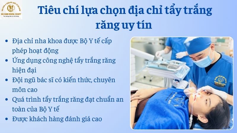 Với những cơ sở uy tín, đội ngũ bác sĩ sẽ được giới thiệu cụ thể trên website, facebook đi kèm với bằng cấp, thâm niên công tác trong nghề. Bác sĩ giỏi là người đã qua trường lớp chính quy, có kiến thức chuyên môn vững vàng cùng nhiều năm kinh nghiệm. Chỉ như vậy mới đảm bảo quá trình tẩy trắng răng diễn ra an toàn và hiệu quả thẩm mỹ cao cho khách hàng.