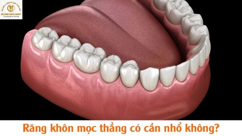 - Răng khôn mọc thẳng và không gây biến chứng: Khi răng khôn mọc thẳng hoàn toàn, có đủ khoảng trống trên cung hàm và không gây bất kỳ tác động tiêu cực nào đến răng số 7, đồng thời được vệ sinh sạch sẽ, việc nhổ bỏ là không cần thiết.