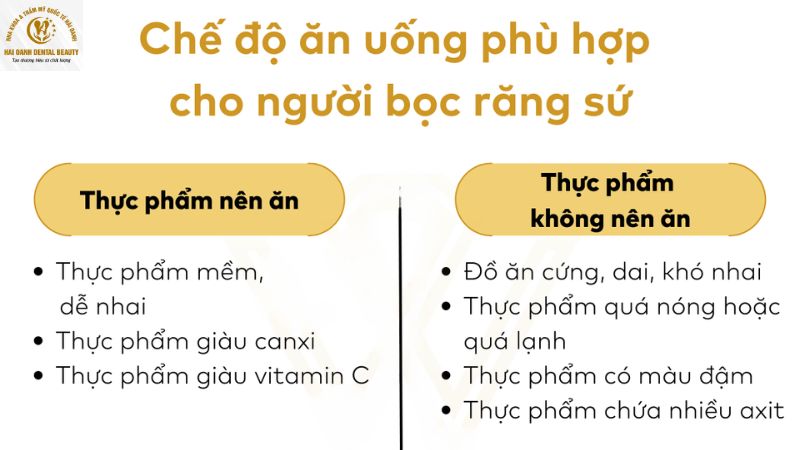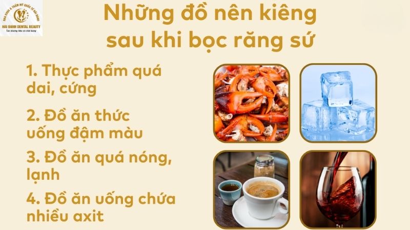 Để duy trì màu sắc hoàn hảo cho răng sứ, hãy hạn chế sử dụng các thực phẩm và đồ uống có màu đậm như cà phê, trà hay rượu vang. Tránh ăn các loại đồ ăn quá cứng, dai để không làm ảnh hưởng đến độ bền của răng sứ.