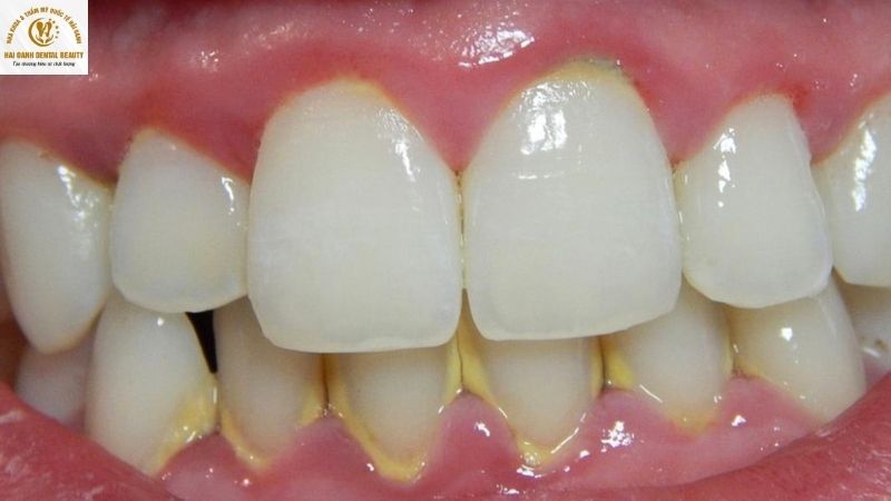 - Nếu do mảng bám: Vấn đề này thường xuất phát từ việc vệ sinh chưa kỹ lưỡng. Mảng bám thức ăn tích tụ, đặc biệt ở viền nướu, gây cảm giác răng bị ố vàng. Giải pháp hiệu quả là thăm khám nha khoa định kỳ để lấy cao răng chuyên nghiệp. Bác sĩ sẽ làm sạch toàn diện, giúp răng sứ lấy lại vẻ trắng sáng ban đầu.
