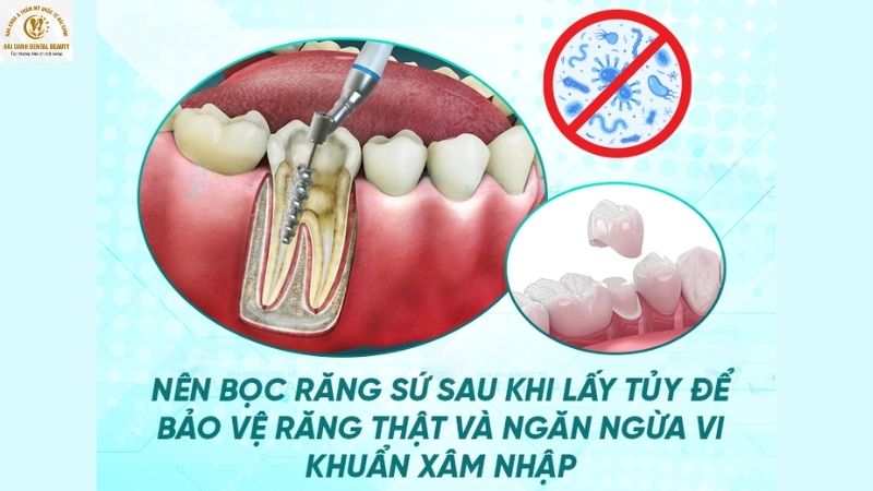 Theo bác sĩ CKI. Trần Văn Hải – Chuyên gia bọc răng sứ tại Nha khoa Thẩm Mỹ Quốc Tế Hải Oanh, việc bọc răng sứ sau khi lấy tủy là điều nên làm. Bởi vì giải pháp này sẽ giúp bảo vệ chân răng còn lại của răng thật, ngăn ngừa vi khuẩn xâm nhập làm tổn hại răng. Đồng thời, bọc răng sứ còn giúp cải thiện tình trạng ăn nhai và thẩm mỹ của răng tốt hơn. Cụ thể các lợi ích của bọc răng sứ sau khi lấy tủy như sau: