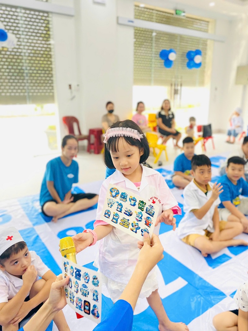 Những nội dung này được trình bày sinh động bằng hình ảnh và mô hình minh họa trực quan, giúp các em dễ tiếp thu và hình thành thói quen chăm sóc răng miệng khoa học.