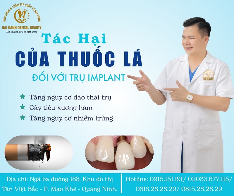 Các bác sĩ nha khoa thường yêu cầu người hút thuốc phải tuân thủ một chế độ nghiêm ngặt trước và sau phẫu thuật. Cụ thể, cần ngưng hút thuốc ít nhất 2 - 4 tuần trước khi phẫu thuật để cơ thể có thời gian phục hồi và cải thiện lưu thông máu. Sau phẫu thuật, việc kiêng thuốc lá ít nhất 3 tháng, hoặc tốt nhất là từ bỏ VĨNH VIỄN, là bắt buộc. Điều này giúp vết thương nhanh lành, giảm nguy cơ nhiễm trùng cũng như tạo điều kiện tốt nhất cho trụ Implant tích hợp vào xương hàm.
