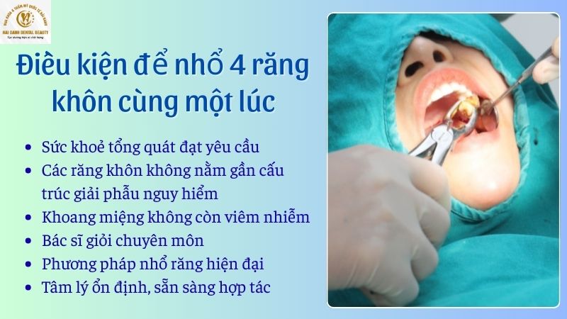 Nhổ 4 răng khôn cùng lúc là một ca tiểu phẫu lớn, đòi hỏi quá trình chăm sóc hậu phẫu cẩn thận để đảm bảo an toàn và rút ngắn thời gian hồi phục. Các chuyên gia của chúng tôi tại Nha khoa Thẩm mỹ Quốc tế Hải Oanh xin chia sẻ những kinh nghiệm quý báu giúp bạn vượt qua giai đoạn này một cách nhẹ nhàng.