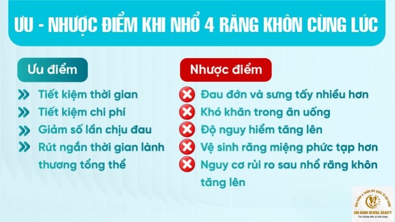 2.1. Ưu điểm và nhược điểm khi nhổ 4 răng khôn cùng lúc