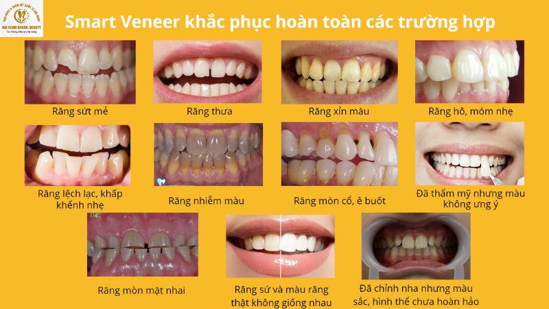 - Phù hợp với các tình trạng răng như: răng nhiễm màu nhẹ, răng thưa, răng sứt mẻ nhỏ, răng hình thể xấu, răng hơi lệch lạc.