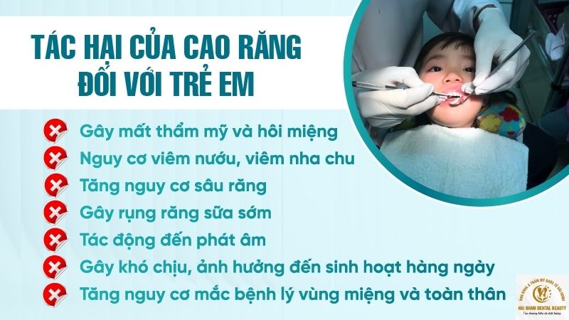 Cao răng tưởng chừng chỉ là vấn đề thẩm mỹ, nhưng thực tế lại tiềm ẩn nhiều ảnh hưởng nghiêm trọng đến sức khỏe răng miệng và sự phát triển toàn diện của trẻ. Nếu không được xử lý kịp thời, cao răng có thể gây ra nhiều tác hại như: